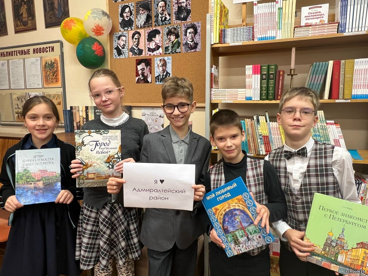 В начальной школе №615 прошли классные часы, беседы, внеурочные занятия в честь этого замечательного праздника. Ученики школы побывали в виртуальной экскурсии по Адмиралтейскому району. Они увидели и узнали, что на территории этого исторического района находятся уникальные памятники архитектуры — Исаакиевский собор, Юсуповский и Мариинский дворцы, здания Сената и Синода, в которых работают Конституционный суд и Президентская библиотека, Мариинский театр, Санкт-Петербургская консерватория, которая недавно предстала в обновлённом виде после масштабной реставрации и много других достопримечательностей.