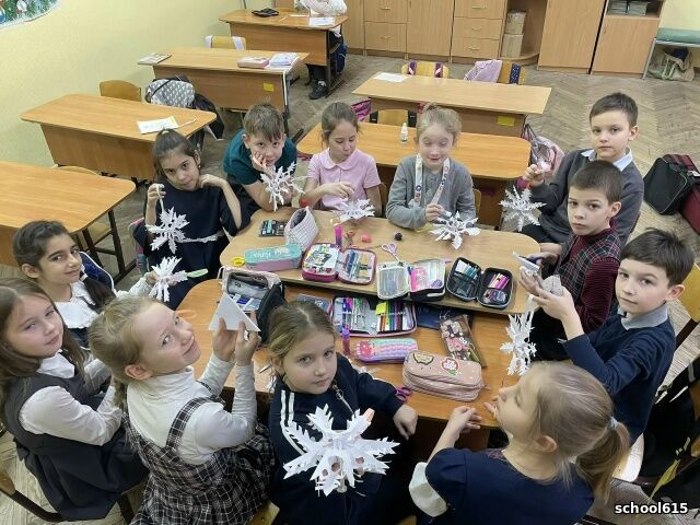 В группе продлённого дня воспитатель Гасангусейновой А.Г. провела Мастер-класс "Новогоднее украшение - объёмная снежинка своими руками" для учащиеся 2«В» класса начальной школы №615. Под руководством воспитателя ученики сделали из бумаги украшения к Новому году.