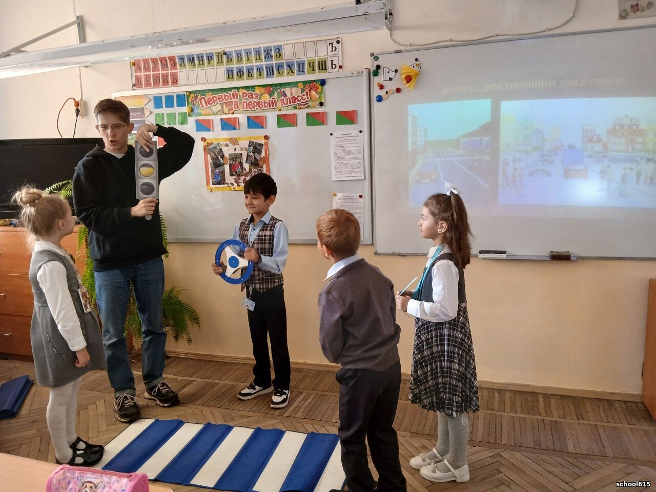 В начальной школе №615 во всех 1-х классах каждую среду проходят дополнительные занятия "Друзья светофора".