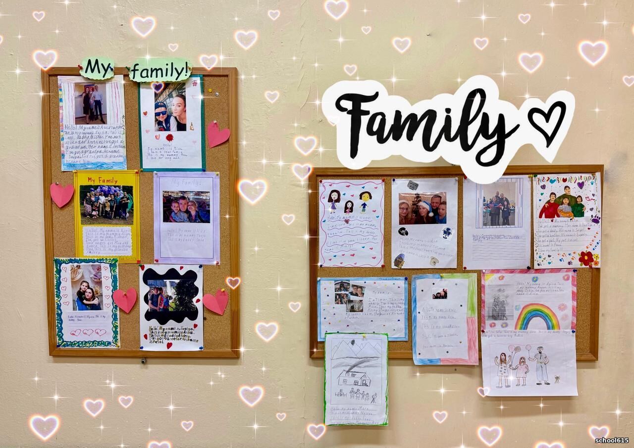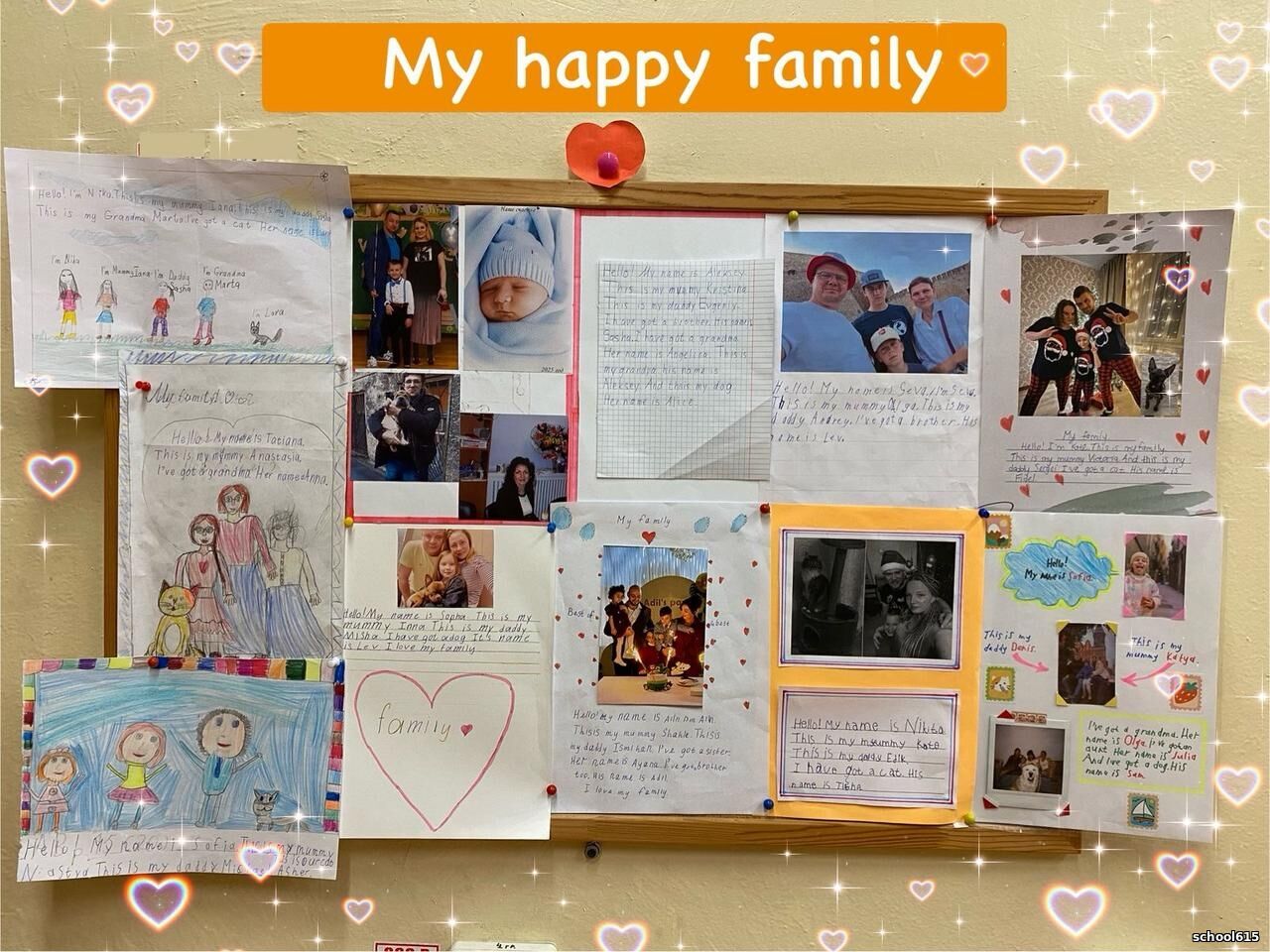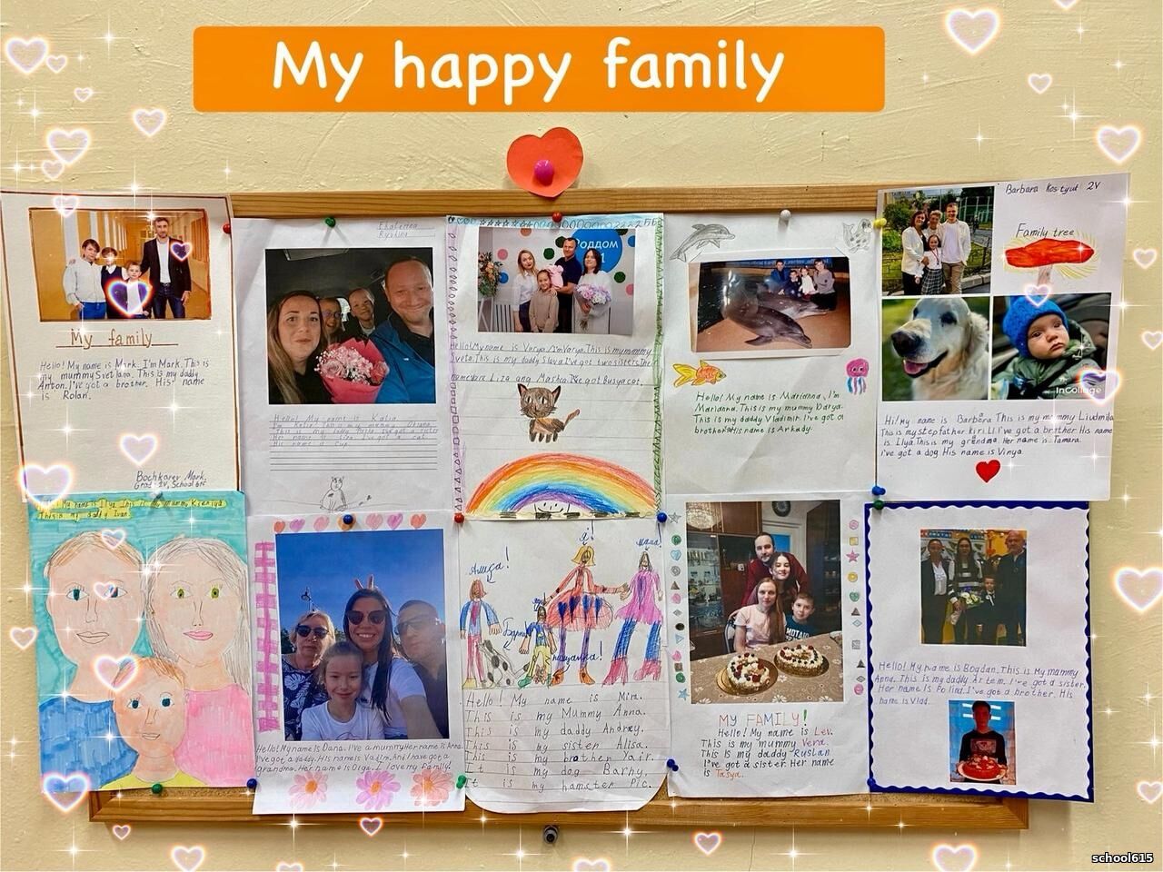 В этом году школе 615 под руководством учителей английского языка Анны Олеговны Шумилиной и Евгении Витальевны Гончар проведён проект «My Family» («Моя семья») с учениками 2 «Б» и 2 «В» классов. Работы получились очень яркие и интересные. Учащиеся составили текст о своей семье на английском языке, а также красиво оформили свои проекты. Учителям английского языка очень понравились работы второклассников и они оформили замечательную выставку творческих работ «My Family».