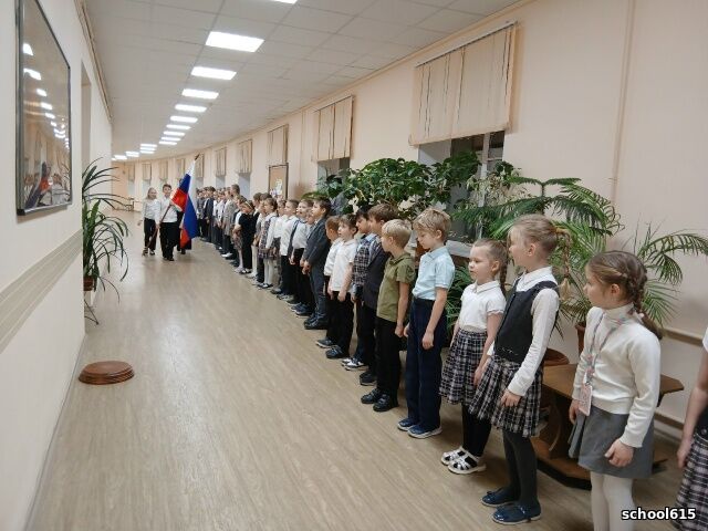 В понедельник, 1 декабря, в начальной школе №615 утро началось с традиционной торжественной церемонии выноса Государственного флага Российской Федерации и исполнения гимна страны. На церемонии присутствовали все учащиеся школы с 1 по 4 классы.