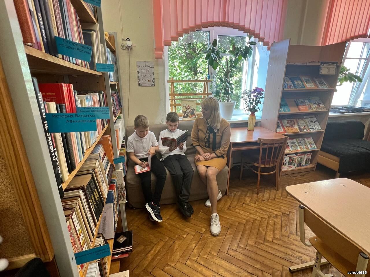 На базе библиотеки школы № 615 состоялась увлекательная акция «Страницы вне времени», приуроченная к Международному Дню распространения грамотности. Советник директора по воспитанию Паскарь Анна Ивановна с педагогом-библиотекарем Барановой Дарьей Сергеевной вместе с учениками погрузились в мир любимых книг и чтения.