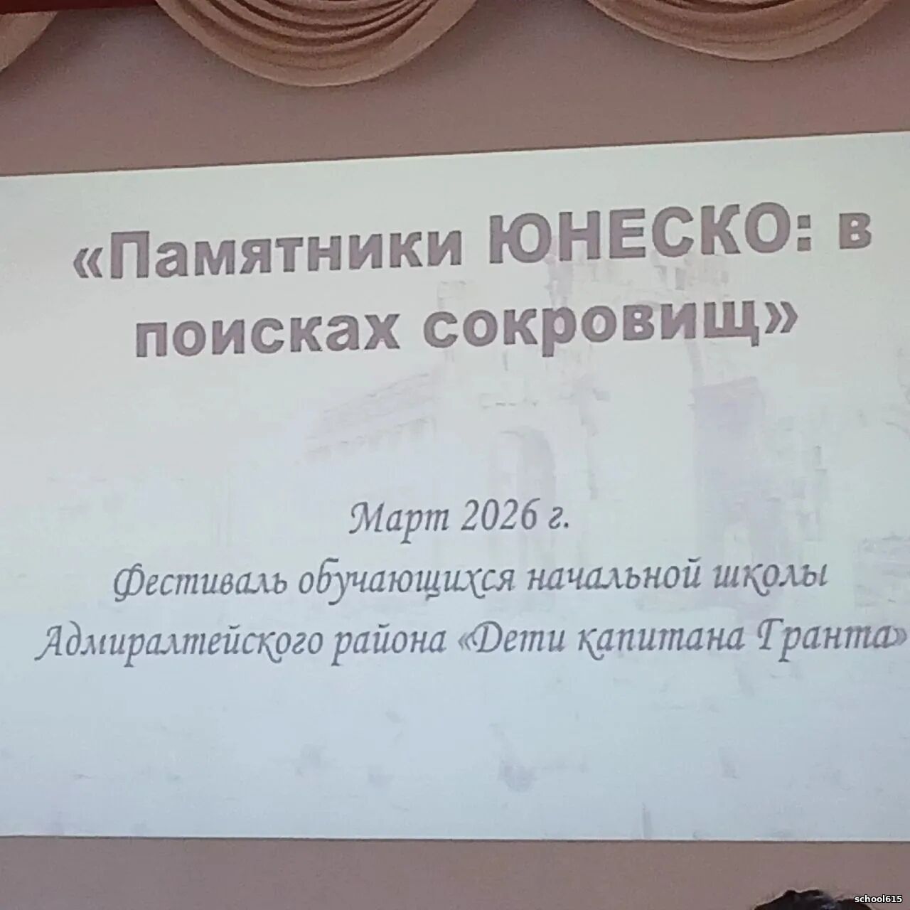 13 марта команда учеников 3 "Г" класса начальной школы 615 приняла участие в фестивале "Памятники ЮНЕСКО: в поисках сокровищ", который проходил в школе 266. В фестивале приняли участие 4 школы Адмиралтейского района. Фестиваль «Памятники ЮНЕСКО: в поисках сокровищ» — это тематическое мероприятие, часть географического фестиваля «Дети капитана Гранта», посвященное представлению и изучению объектов Всемирного наследия ЮНЕСКО. Фестиваль направлен на знакомство с культурными и природными сокровищами мира через интерактивные поиски и образовательные форматы. Ученики нашей начальной школы 615 познакомились, изучили и в необычной творческой форме рассказали о вулканах Камчатки. У нашей команды было яркое интерактивное выступление и она заняла почётное 2 место в общем зачёте и стала победителем в номинации "Юные географы". На географическом фестивале другие команды рассказали об истории Египетских пирамид, ребята виртуально окунулись в достопримечательности Херсонеса, полюбовались великолепием Великой Китайской стены. Наши участники фестиваля показали свои знания, таланты и стали победителями! Поздравляем!