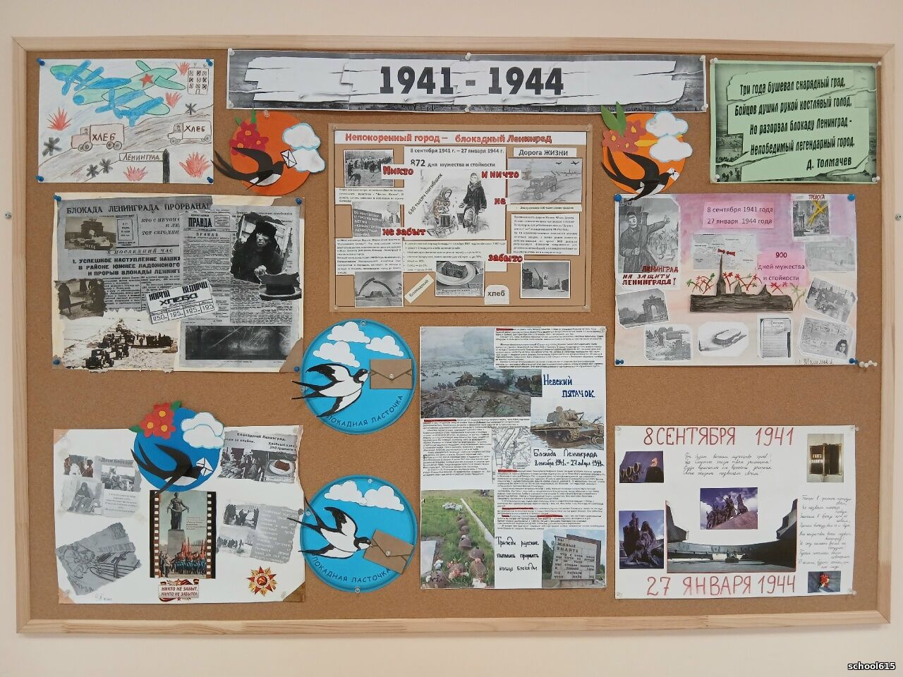 В начальной школе №615 проходил конкурс рисунков и стенгазет «900 дней мужества», посвященный Дню полного освобождения Ленинграда от блокады.