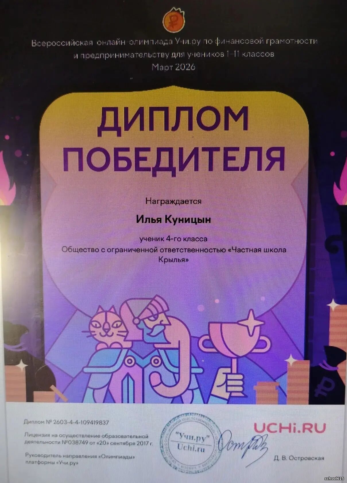 Ученики нашей школы, которые участвовали во всероссийской онлайн-олимпиаде по финансовой грамотности и предпринимательству получили Награды: